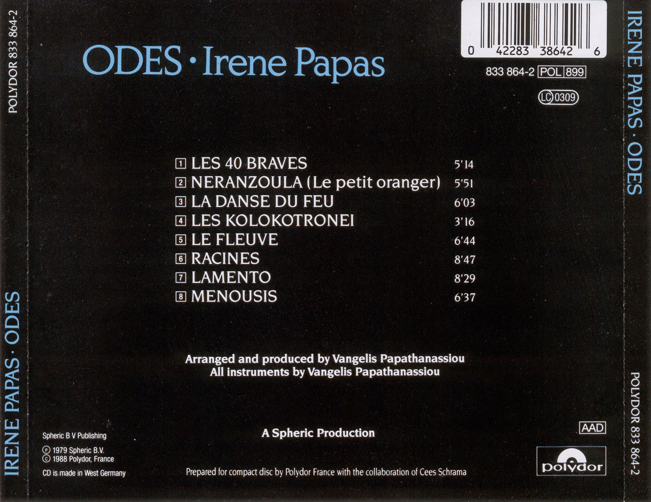 MUSICIANS: | - Vangelis / synthesizers, keyboards - Irene Papas / vocals |