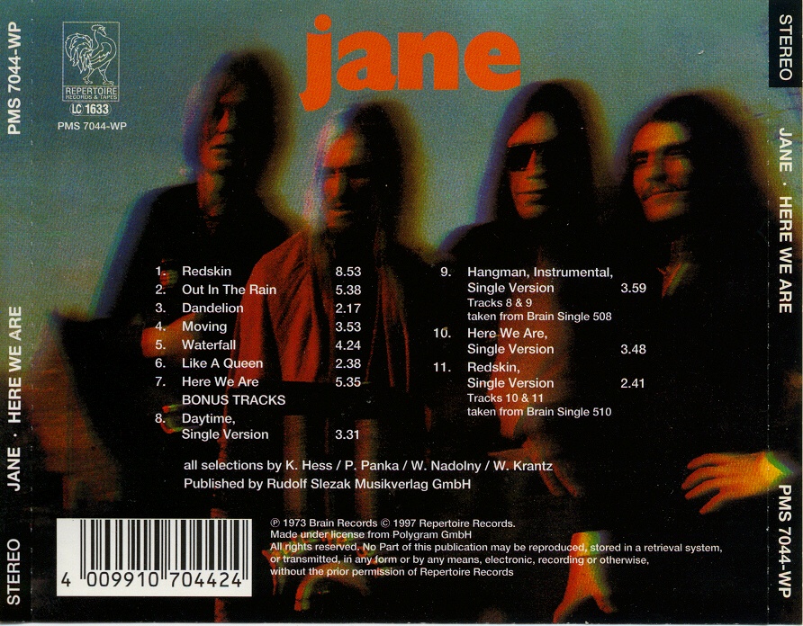 Jane의 두번째 앨범이자 영원한 애청곡 "Out in the rain"이 들어있는 음반이다. CD에는 1집의 Daytime과 Hangman을 포함하여 싱글버전으로 4곡이 추가로 수록되어 있다. 본격적으로 Jane의 트레이드 마크라고 할만한 사운드의 틀을 정착시킨 앨범이라고 할 수 있을 것이다. 선이 굵은 기타라인과 물결치는 오르간,키보드를 중심으로 멜로디가 명확하고 시원스러운 그들의 스타일은 굳이 이야기하자면 정통 브리티쉬 하드락/블루스 사운드를 지향했다고 할 수 있겠다. 이러한 기본 스타일은 이후 중기 앨범들에서 보여지는 보다 더 프로그적인, 보다 더 독일적인 스페이스 사운드의 접목이나 컨셉트앨범의 등장에서도 여전히 유지되고 있는데, 잦은 멤버교체와 오랜 밴드의 역사에 비해서 쉽지는 않은 일이라고 본다. 정리해서 얘기하자면, 15장이 넘는 음반을 발표하면서 자신들의 근간이 되는 골격은 제대로 유지하면서, 트렌드에 맞추어 앨범마다의 특색은 무난하게 변화시켜왔다는 말이다. 이것이 가능했던 근본적인 이유를 나는 멤버들의 역량에서보다도 1차적으로 소박하고 꾸밈없는 Straight-Forward 스타일의 락에 처음부터 촛점이 맞춰져 있었기에 가능했다고 본다. 물론 본토인 영국에서조차도 롱런하면서 항상 그들의 팬을 만족시킨 그룹들이 그리 많은 것은 아니므로 이 밴드멤버들의 실력에 대해서는 일단 한표 던지고 들어가도록 하자. 스튜디오에서뿐 아니라 라이브에서도 강점을 보였던 Jane은 독일적인 체질을 지니고 영국적인 사운드를 지향한 그룹 중 가장 큰 상업적 성공을 거둔 이들이라고 할 수 있는데, 그 성공이 잦은 멤버교체를 딛고 거둔 성공이라는 점에서 의미가 크다하겠다.