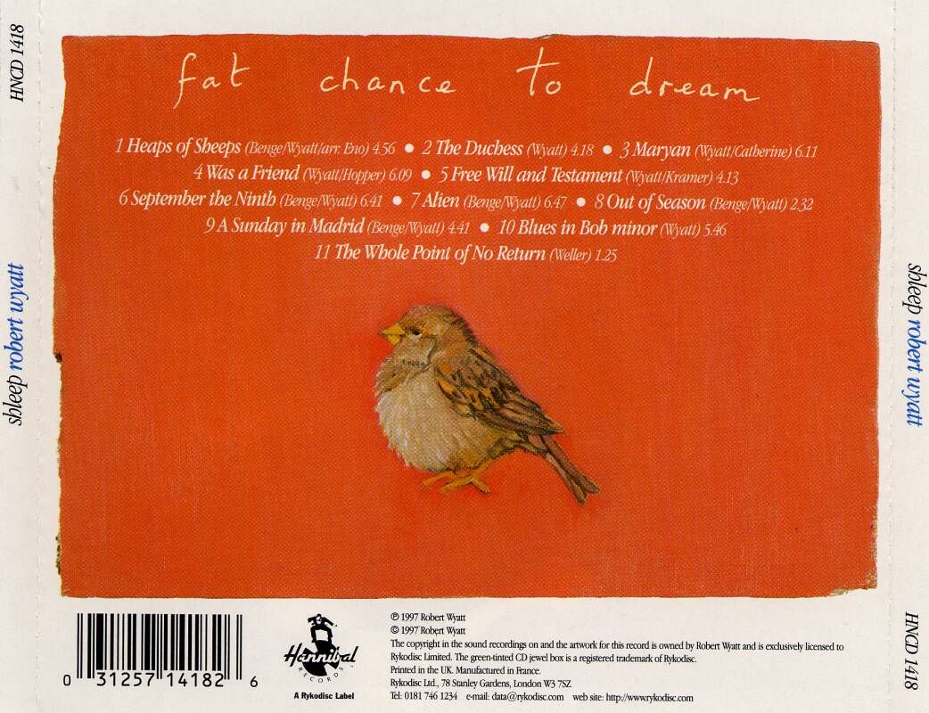 Soft Machine 출신의 Robert Wyatt이 6년간의 침묵을 깨고 드디어 신작 CD [Shleep]을 발표했다. 절친한 음악동료 Phil Manzanera의 Gallery 스튜디오에서 지난해 가을부터 올해 봄사이에 만들어진 본 작을 통해 베테랑 뮤지션 Robert Wyatt은 스튜디오를 빌려준 Phil Manzanera를 비롯 Brian Eno, Paul weller 등 유명 뮤지션들을 초청, 자신의 노익장을 과시하고 있다.