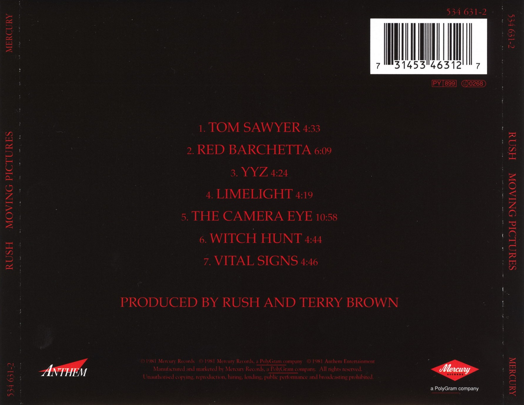 TRACKS: | 1. Tom Sawyer (4:34) 2. Red Barchetta (6:08) 3. YYZ (4:24) 4. Limelight (4:21) 5. The camera eye (10:57) 6. Witch hunt (Part III of Fear) (4:44) 7. Vital signs (4:47) |