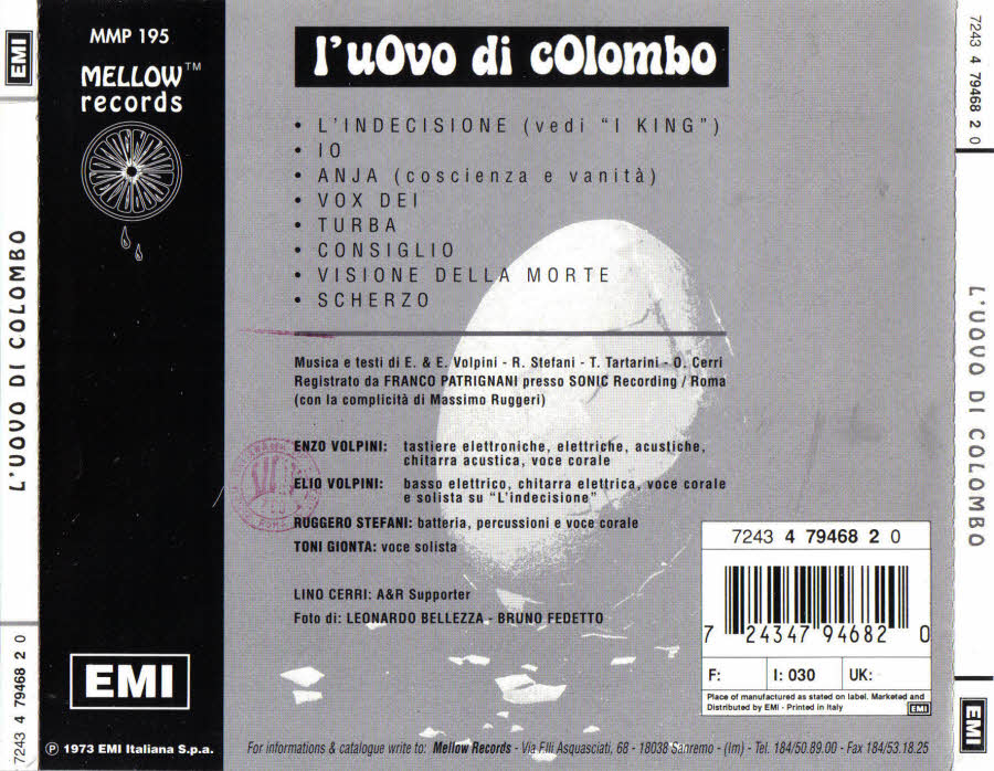 L' Uovo Di Colombo는 그 당시의 어떤 음악관련지에서도 언급된적이 없는 불행한 그룹이었던 것같다. 그룹은 Festival D'Avanguardia Di Napoli에 참여했지만 연주는할 수 없었다. 1973년에 매우 아름다운 앨범커버를 발표했는데 Emerson과 같은 외국 그룹의 영향을 탈피하면서 하드록, 심포닉록에 완전히 편승한 앨범이었다. 보컬과 건반사이에서의 분절음은 싱글 <L'indecisione>에서도 매력을느낄 수 있을만큼 훌륭한 보컬과 건반주자외에도 드러머 Ruggero Stefani의 리듬감각이 돋보인다. <L'indecisione>는 록음반 수집가들에게 필수음반이기도 하다. 그룹의 해산이후 Ruggero Stefani는 Samadhi에 가입하고 Elio Volpini는 Etna와 Flea에 차례로 가입한다.
