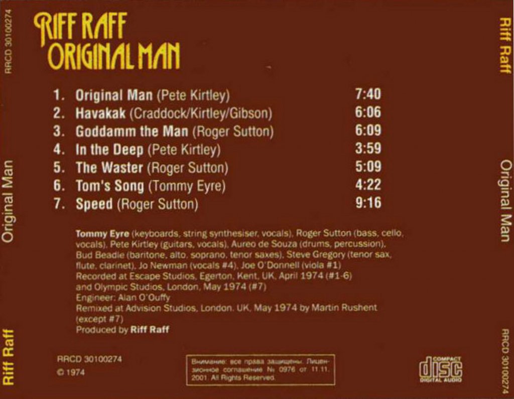 TRACKS: | 1. Original Man (7:40) 2. Havakak (6:06) 3. Goddamm The Man (6:09) 4. In The Deep (3:59) 5. The Waster (5:09) 6. Tom's Song (4:22) 7. Speed (9:16) |