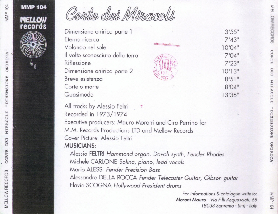 TRACKS: | 1.Dimensione Onirica Parte 1 2.Eterna Ricerca 3.Volando Nel Sole 4.Il Volto Sconosciuto Della Terra 5.Riflessione 6.Dimensione Onirica Parte 2 7.Breve Esistenza 8.Corte O Morte 9.Quasimodo |